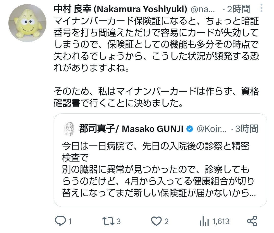 マイナをめぐるトラブルに関して、某党議員が「ここまでの仕事ぶりを見たら更迭が適当」と河野太郎デジ庁大臣の辞任を要求したらしいが、