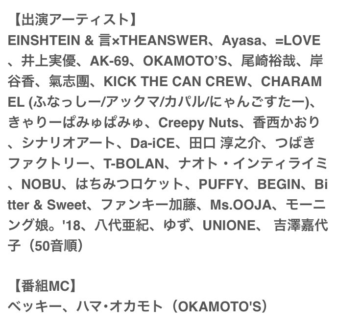 【全33組52曲】スカパー!音楽祭セットリスト発表【来週5時間生放送】