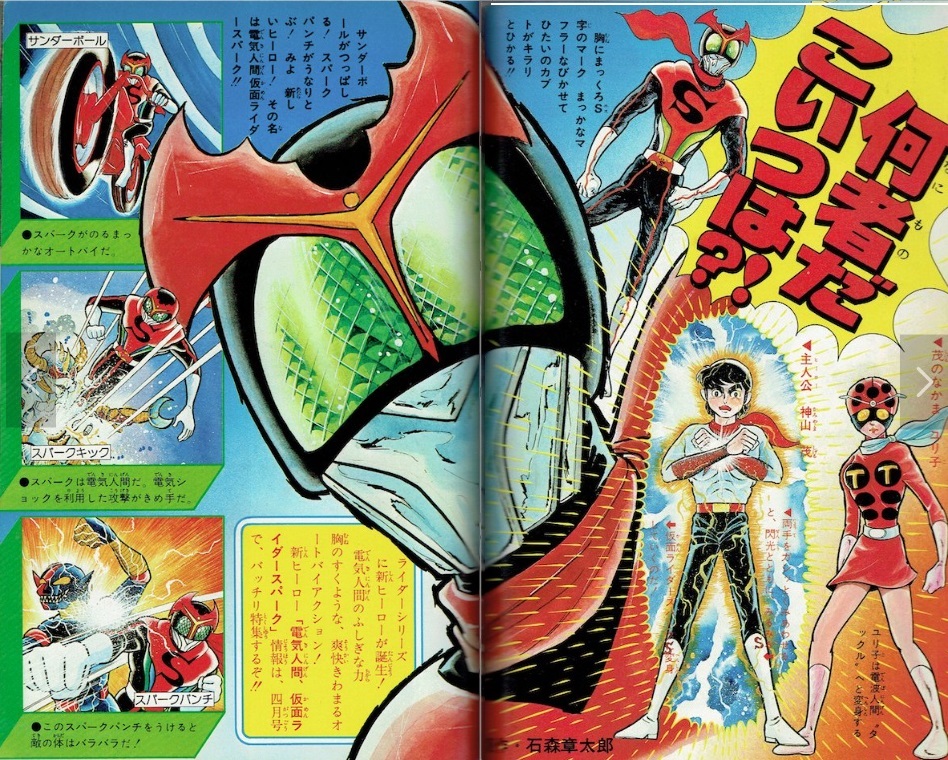 たとえば、電車の中で、知人と仮面ライダー旧1号の話をしていたら、別の車両から、突然、知らない人が走ってきて、