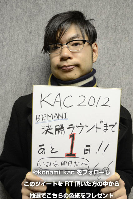 ショッチョーです!KAC2012決勝ラウンド、BEMANIシリーズいよいよ明日やで~!各会場で、Ustreamで、僕達と一緒に応援しよな!( p.tl/_qav- )トッププレーヤー達の熱い戦い、見逃したらアカンで~!