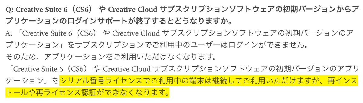 みんなよく読むんだ。「使えなくなる」のと「再インストールができなくなるの」があるぞ。パッケージ版は後者に該当する(ハズ)から、今のうちに対策を検討するのだ(CC版の方は今月一杯が勝負?)。