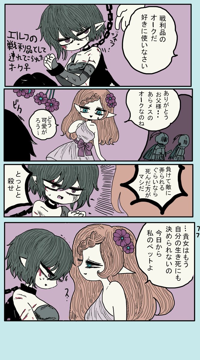 戦で負けて戦利品にされたオーク♀が エルフに色々される話