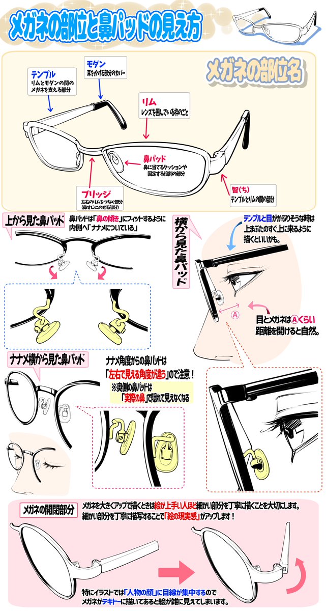 メガネ👓を描くときの細かい部分。