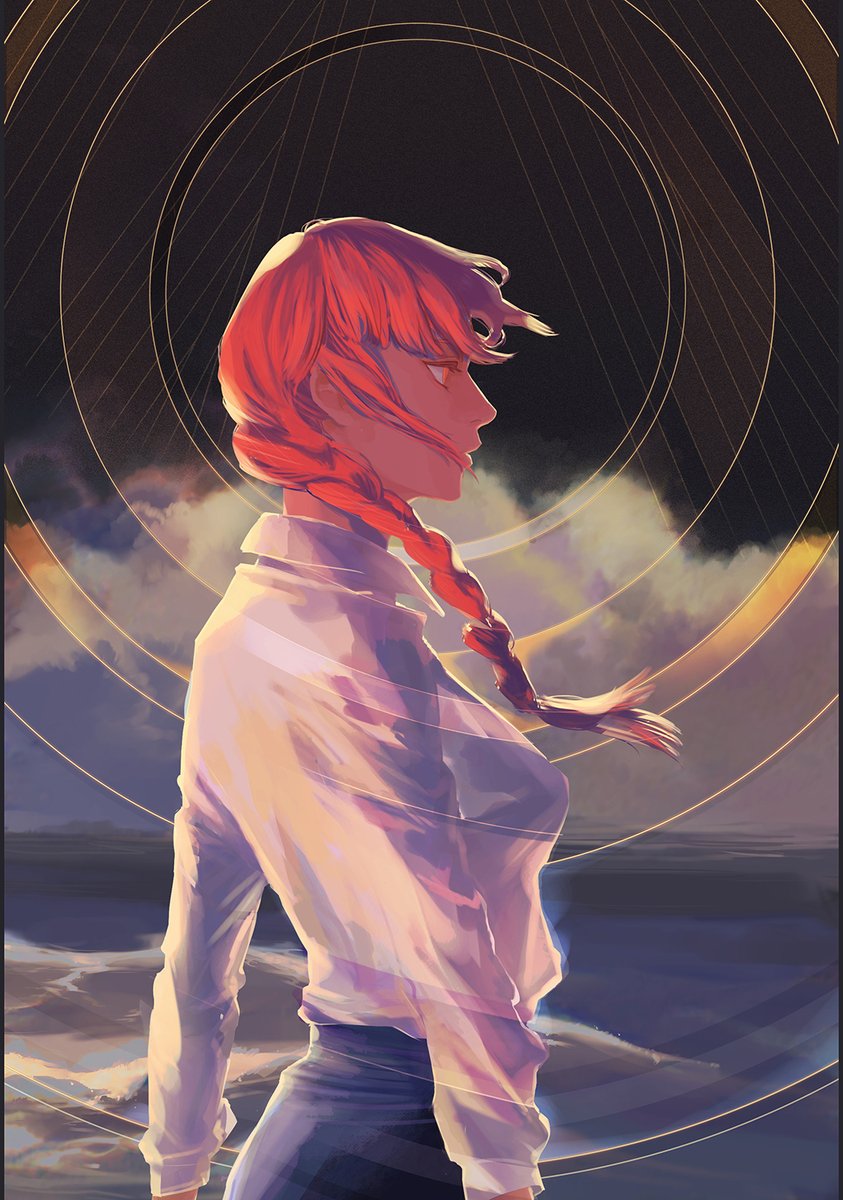 これ描いたの二部2話目更新前でアサと同化した戦争の悪魔が女子高生ライフを送るという自分内妄想で描いていて今見ると少し恥ずかしい…塗りは気に入っている