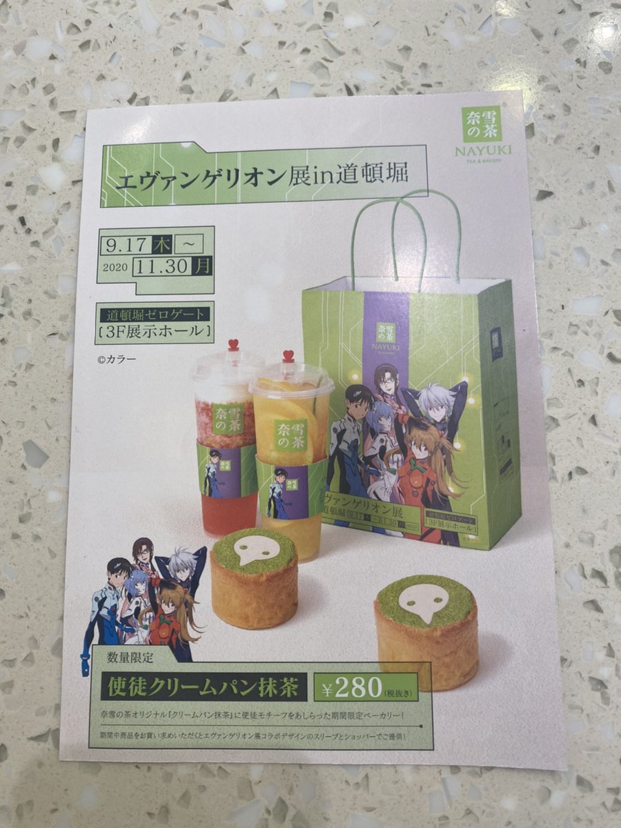 EVANGELION STORE DOTONBORIでは限定グッズなど多数販売!道頓堀ゼロゲート1F奈雪の茶さんでは、「使徒クリームパン抹茶」も数量限定で販売。期間中はエヴァ展コラボデザインのスリーブとショッパーになるそうです。 eva-info.jp/9391