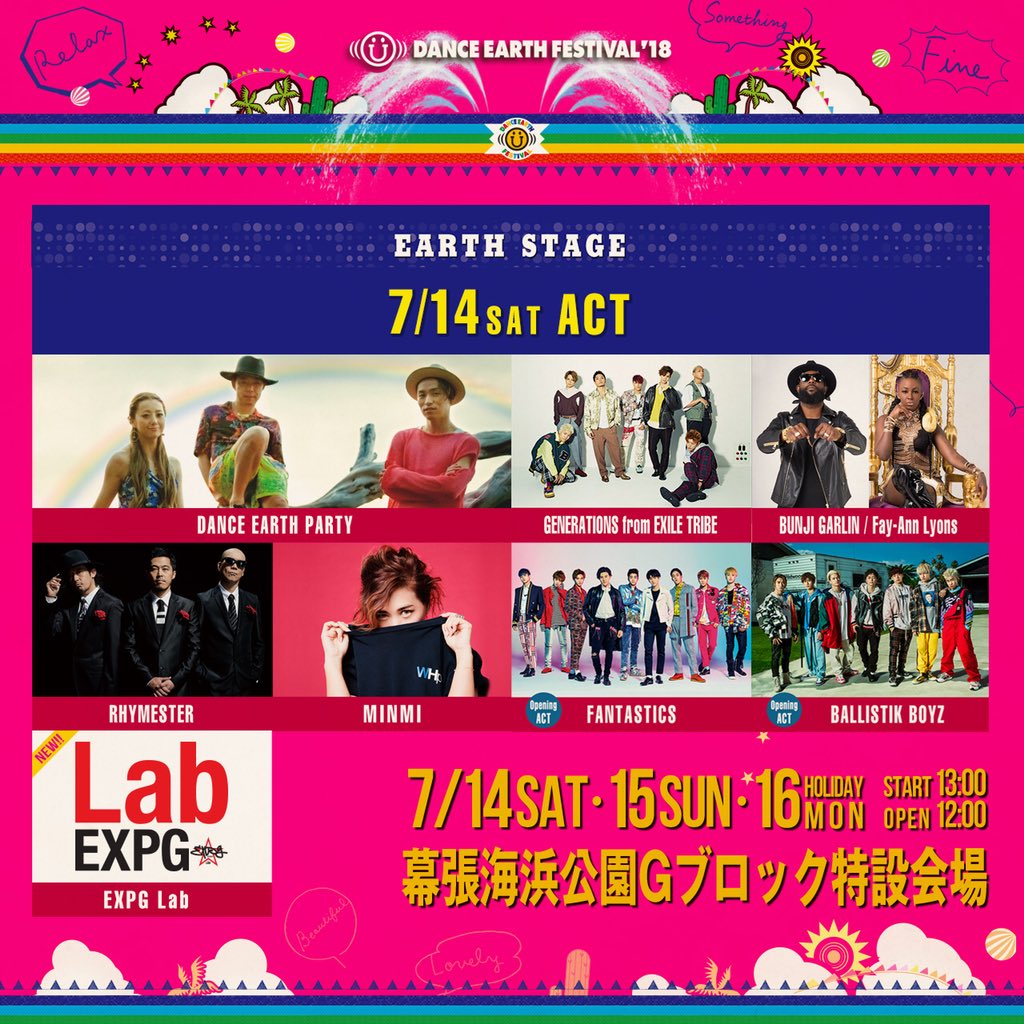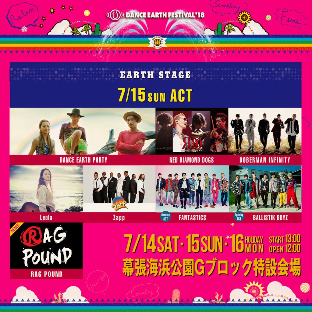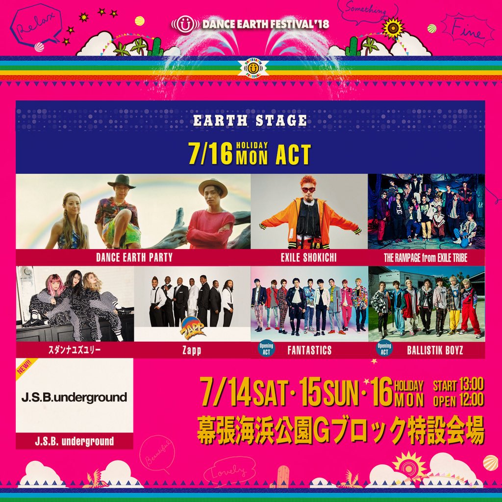 DANCE EARTH FESTIVAL 2018一般発売は6/16〜!詳細は公式HPで随時更新します!メンバーメッセージも是非チェックしてください♬