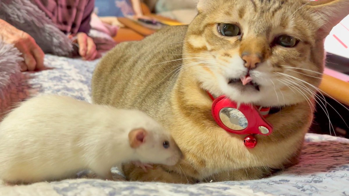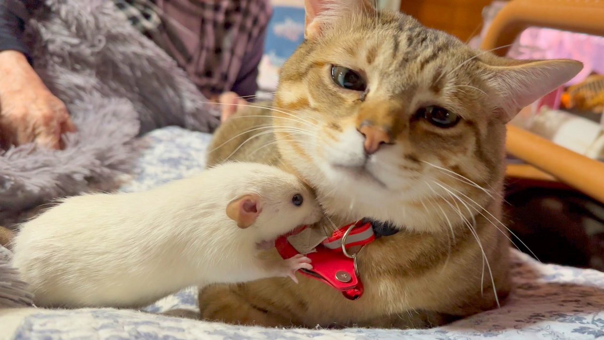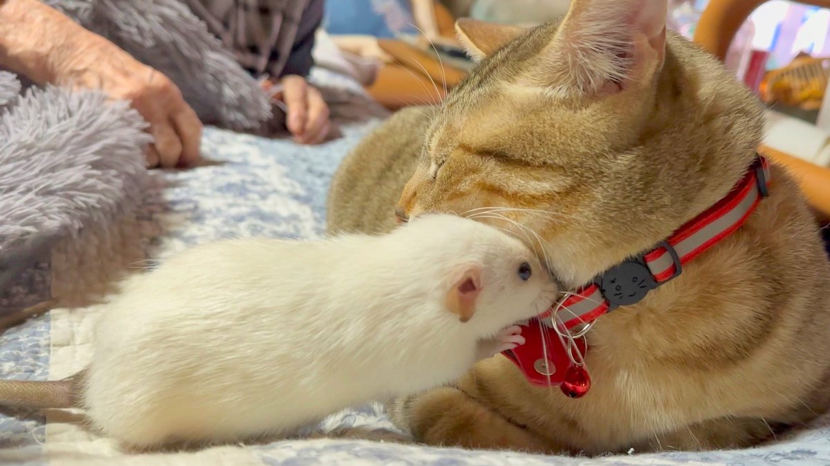🐁「猫さん素敵な首輪ですね????」 🐱「やめて…やめてください…」