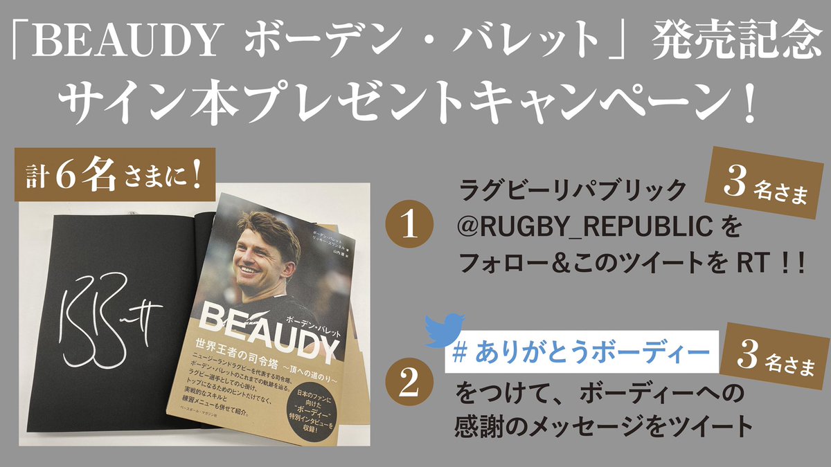 @RUGBY_REPUBLIC をフォローしてリツイート!抽選で3名様にサイン本をプレゼント🎁