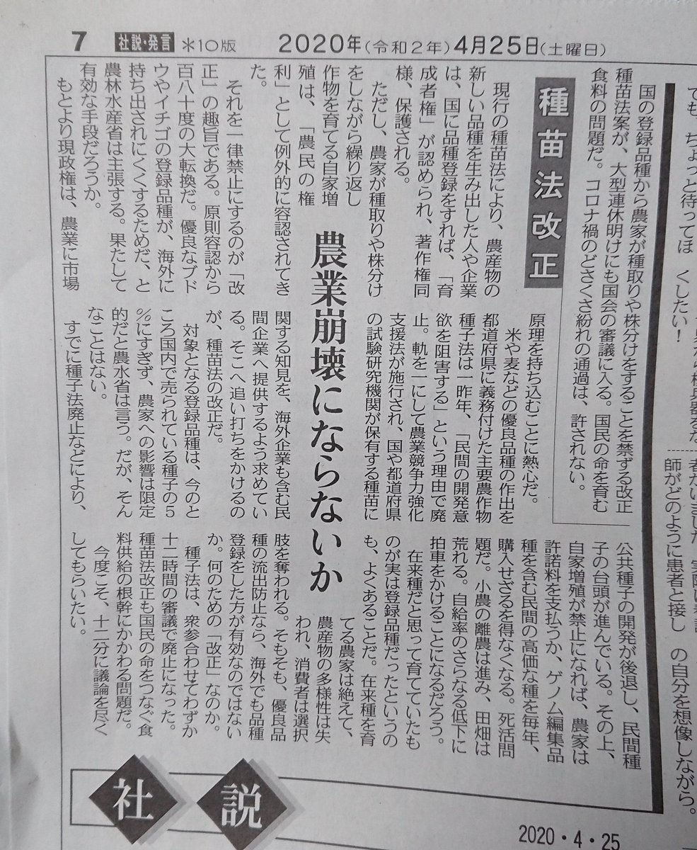 みんな、地域の農業委員会や県市町村議員、そして、国会議員や事務所に電話なり直接言うなりして、#種苗法改正 の審議を中止させよう! twitter.com/TsutsumiMika/s…