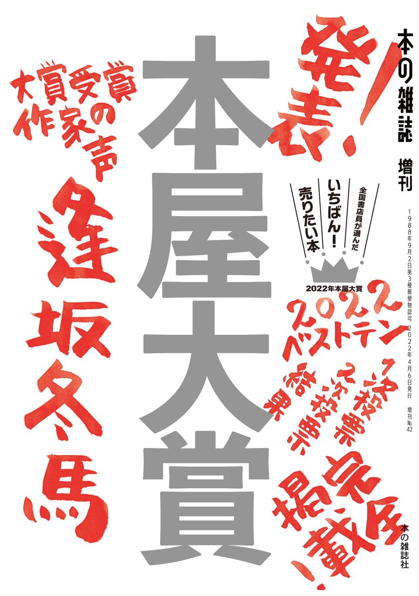 おはようございます。昨日は2022年本屋大賞を発表いたしました。ぜひぜひ本屋に足を運んで、本屋大賞受賞作品はもちろんのこと、本屋に並んでいるたくさんの本と出会っていただけたらと願っております。皆様のご来店をお待ちしております。