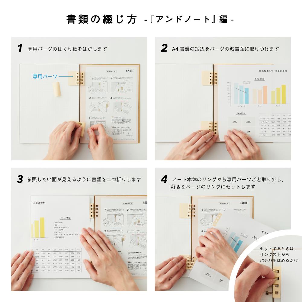 A4書類を”綴じる”専用パーツを使ってノートに書いた情報と関連した書類をコンパクトにまとめて持てる、新発想のダブルリングノート『&NOTE(アンドノート)』を3月15日(金)に発売します。