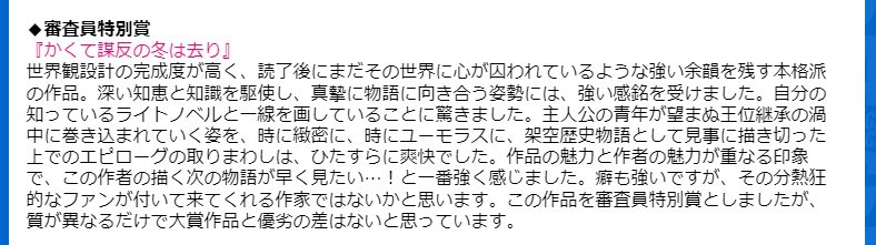 受賞作はガガガ文庫から出版される予定です。面白いのでぜひ読んでください gagagabunko.jp/grandprix/entr…