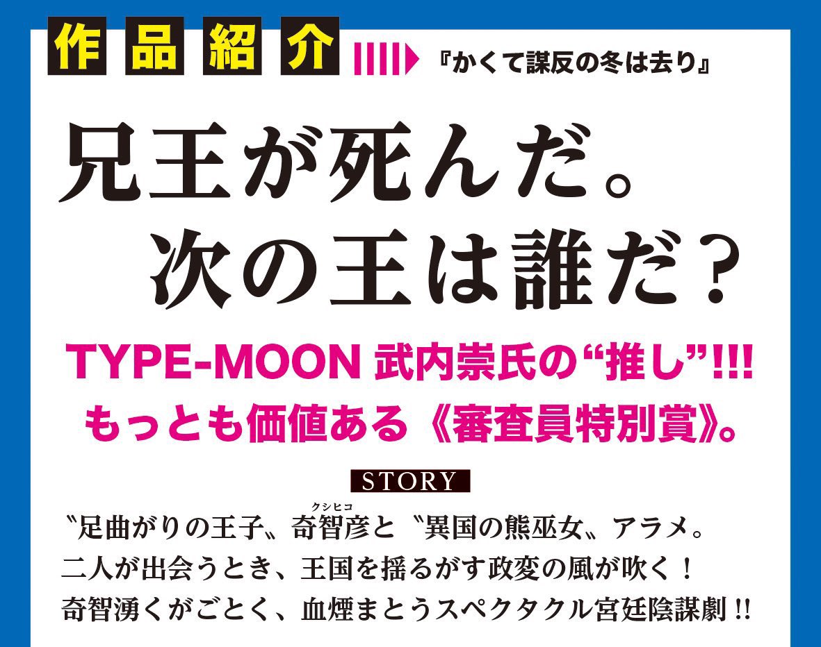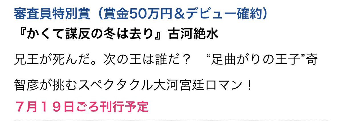 『かくて謀反の冬は去り』の新人賞サイトが出ました!