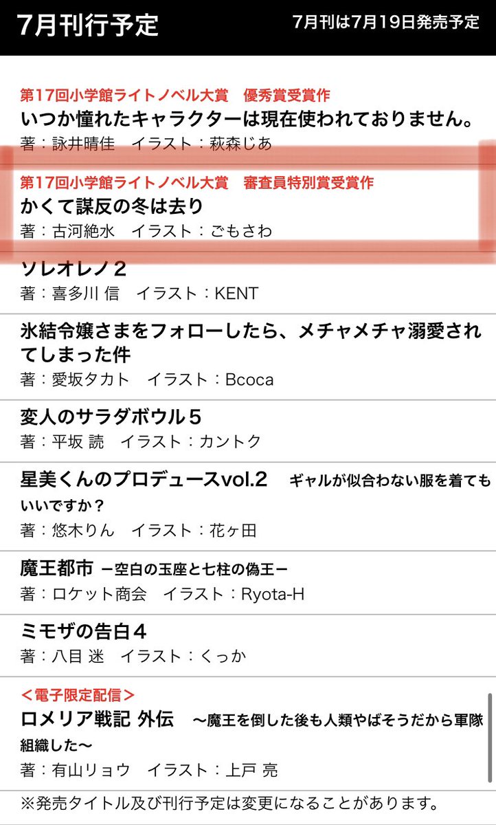#7月19日発売