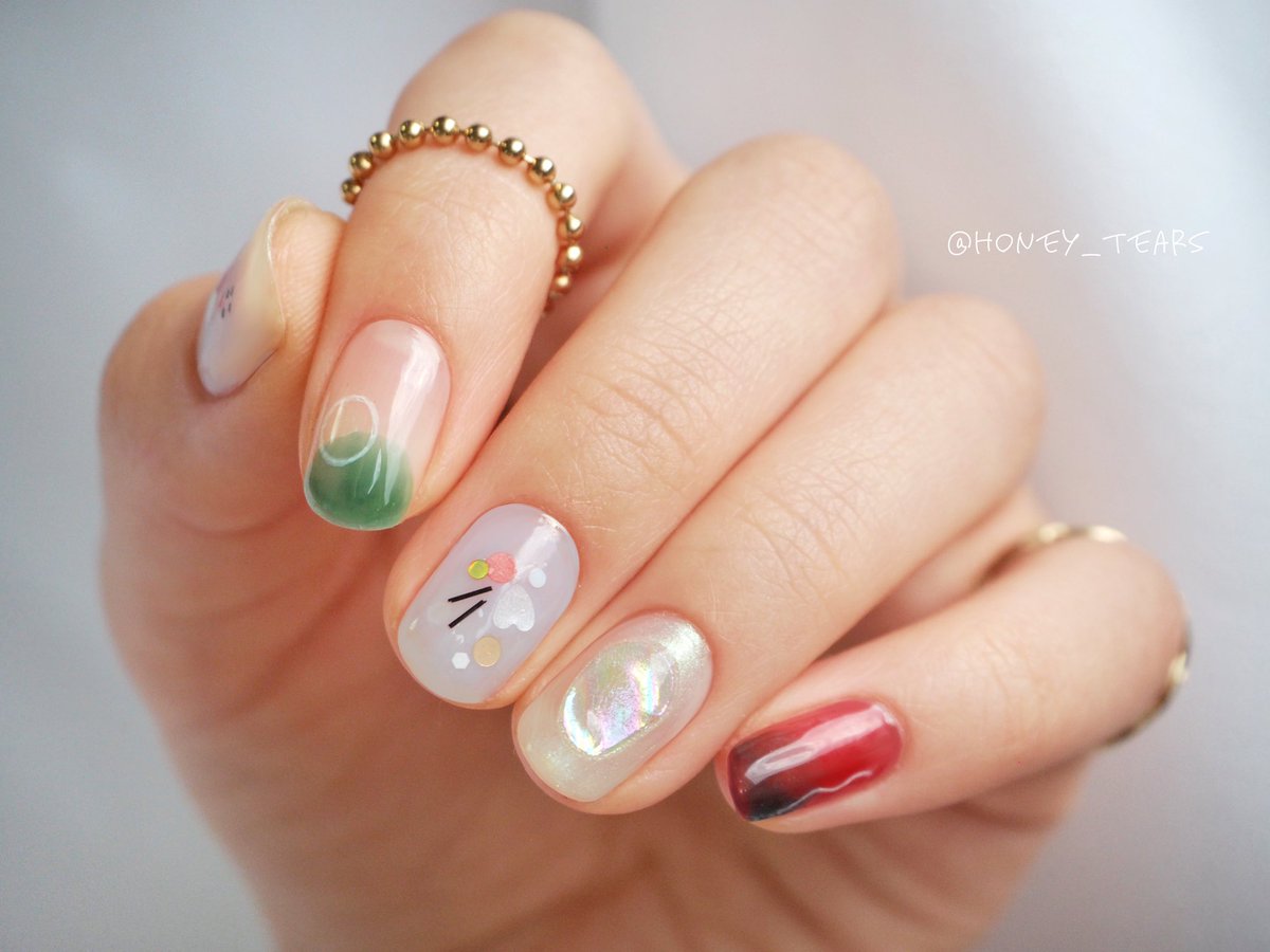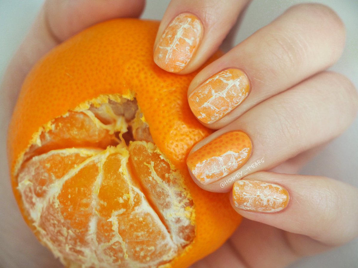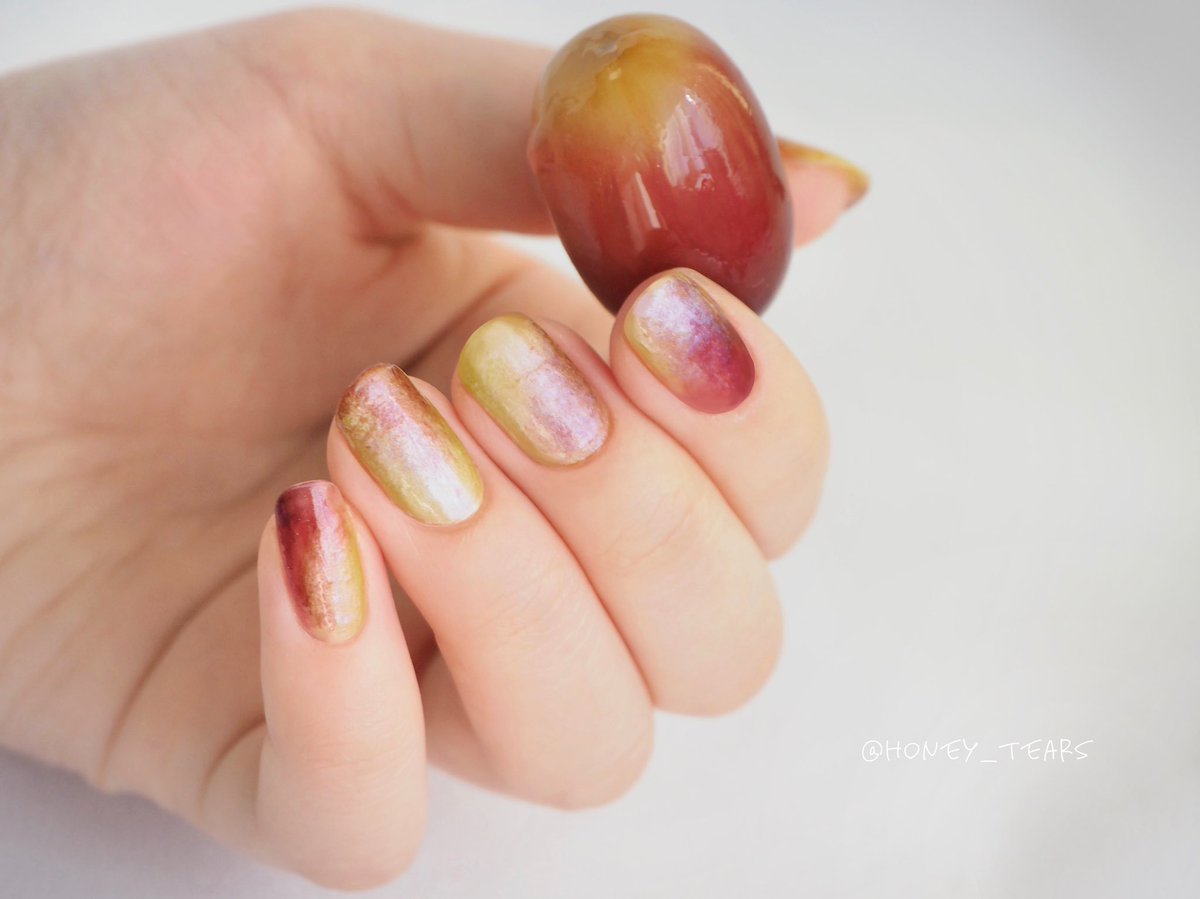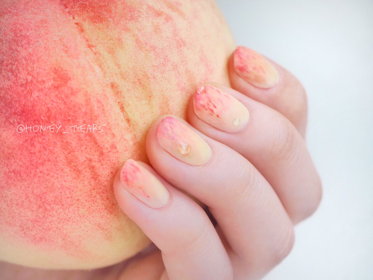 皮を剥きかけの感じや、剥いて出てきた果肉っぽさを出したいなぁと思いながらネイルしてみました💅