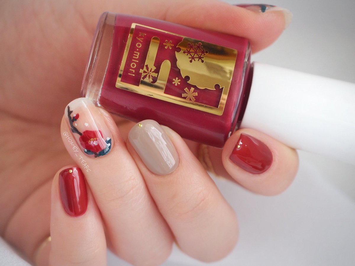 冬の寒さに耐えて咲く、赤い椿のネイルです❅*