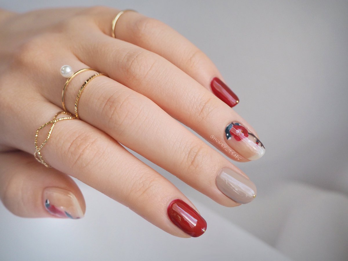 椿を引き立たせる為に他の指は極力シンプルにしました🤍