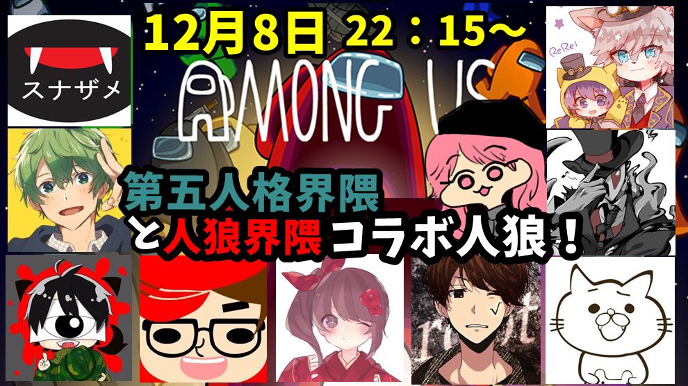 明日12月8日 22:15より みんなで楽しく宇宙人狼で遊びます🥳 初めましての方もいて楽しみ! 是非明日遊びにきてね!