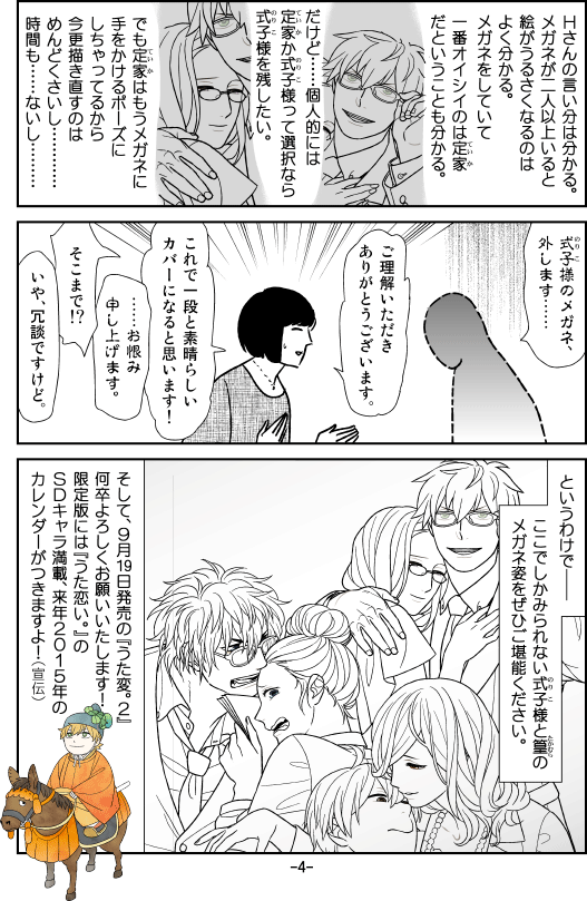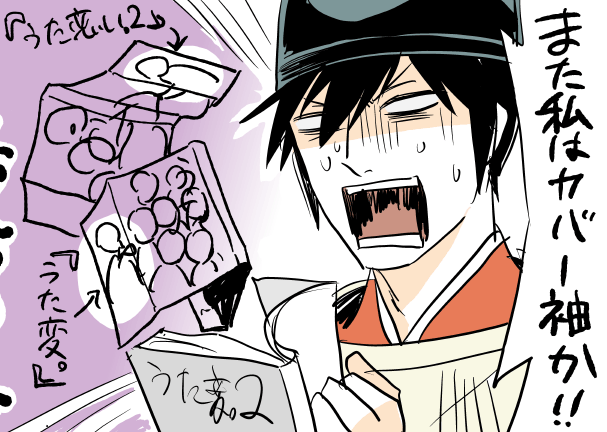 こちら、拙作『うた恋い。』の宗貞お兄様の「袖男」を越える惨い仕上がりでございます。裏表紙をお楽しみに。