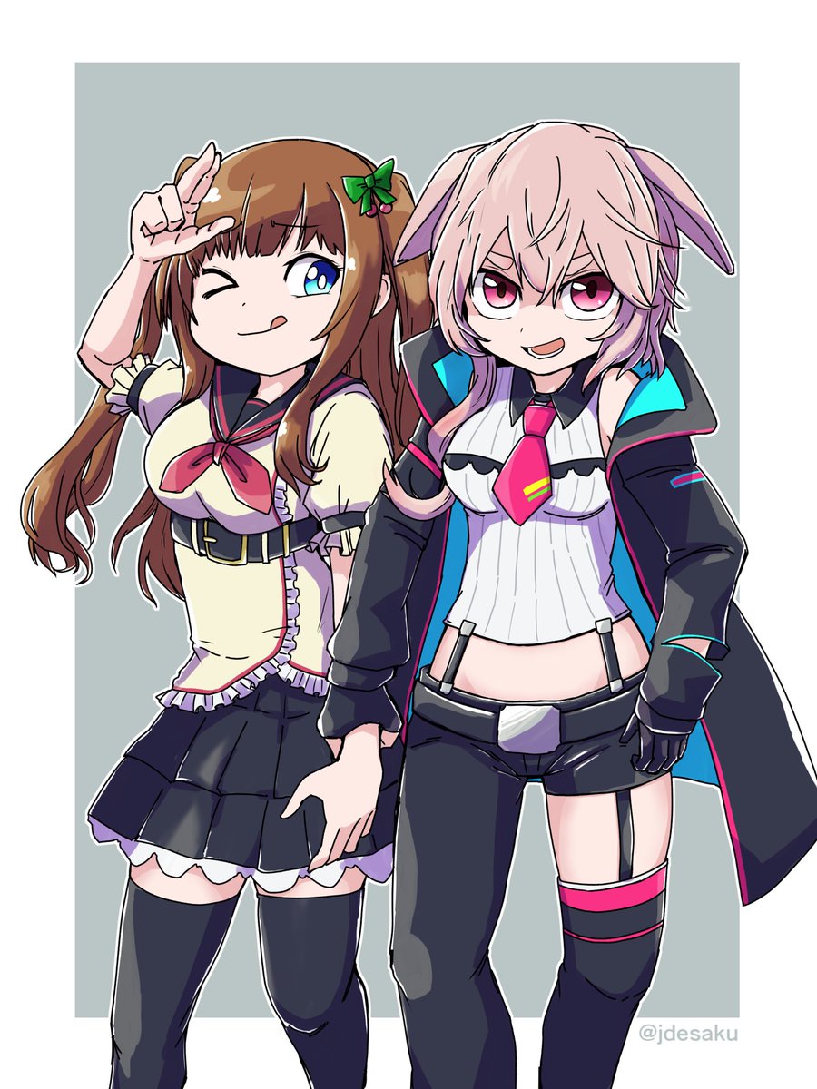 「「先輩コイツです!!!めめめが言ってた生意気なガキってのは!!!!!」みたいなことを言いながら花京院ちえり(VTuber)を連れてくるもこ田めめめ(VTuber)」(Skeb) Thanks for commission!