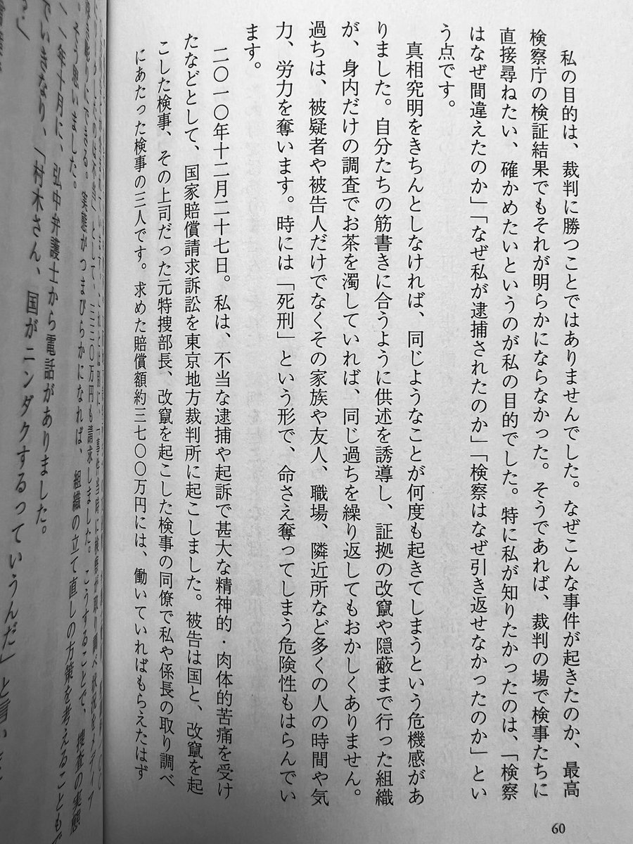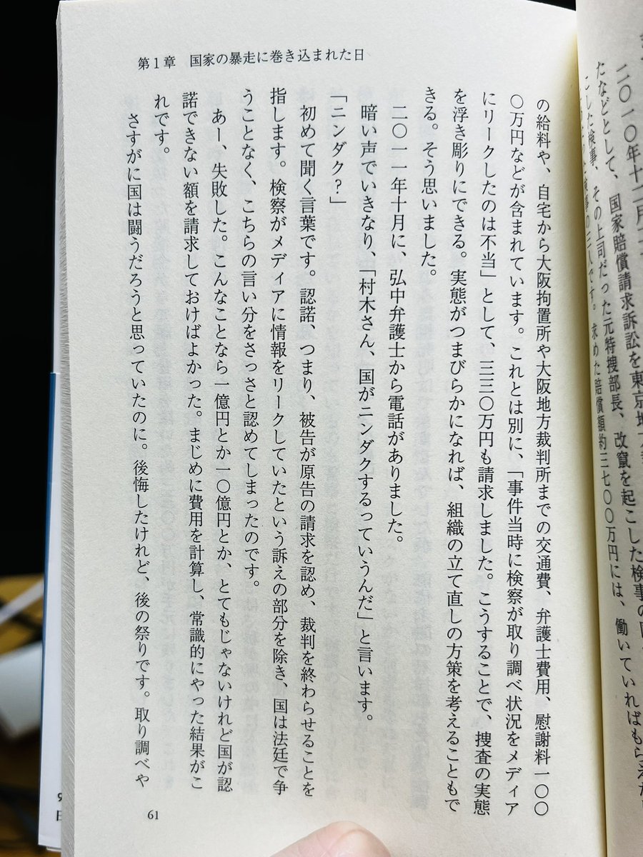 「あー、失敗した。こんなことなら一億とか十億とか、とてもじゃないけれど国が認諾できない額を請求しておけばよかった。」(『日本型組織の闇を考える』村木厚子著p.60)