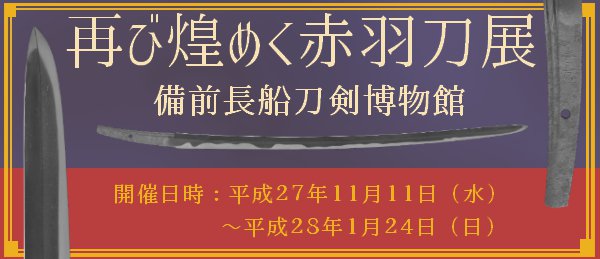 備前長船刀剣博物館では、明日11月11日(水曜日)からテーマ展「再び煌めく赤羽刀展」を開催します。詳細はbit.ly/1SerFGIをご確認ください。
