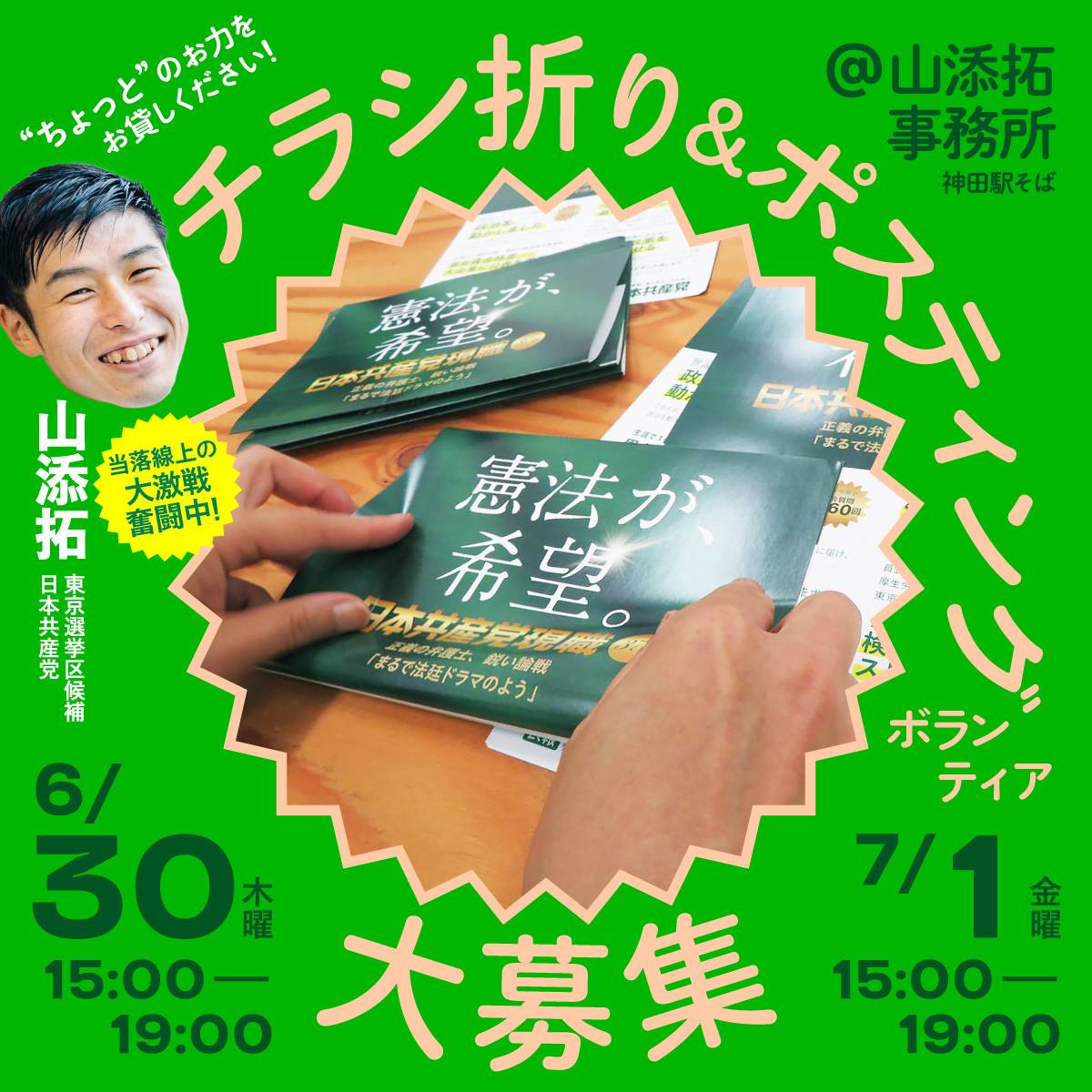 新しい「憲法が、希望」チラシ折り&ポスティングのボランティアです。ご協力をお願いします!