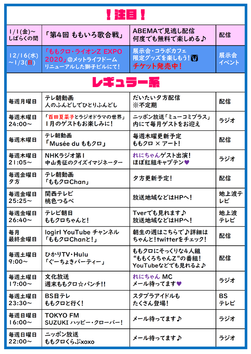 ももクロのレギュラー番組