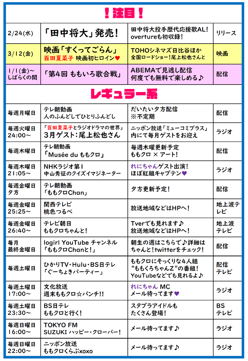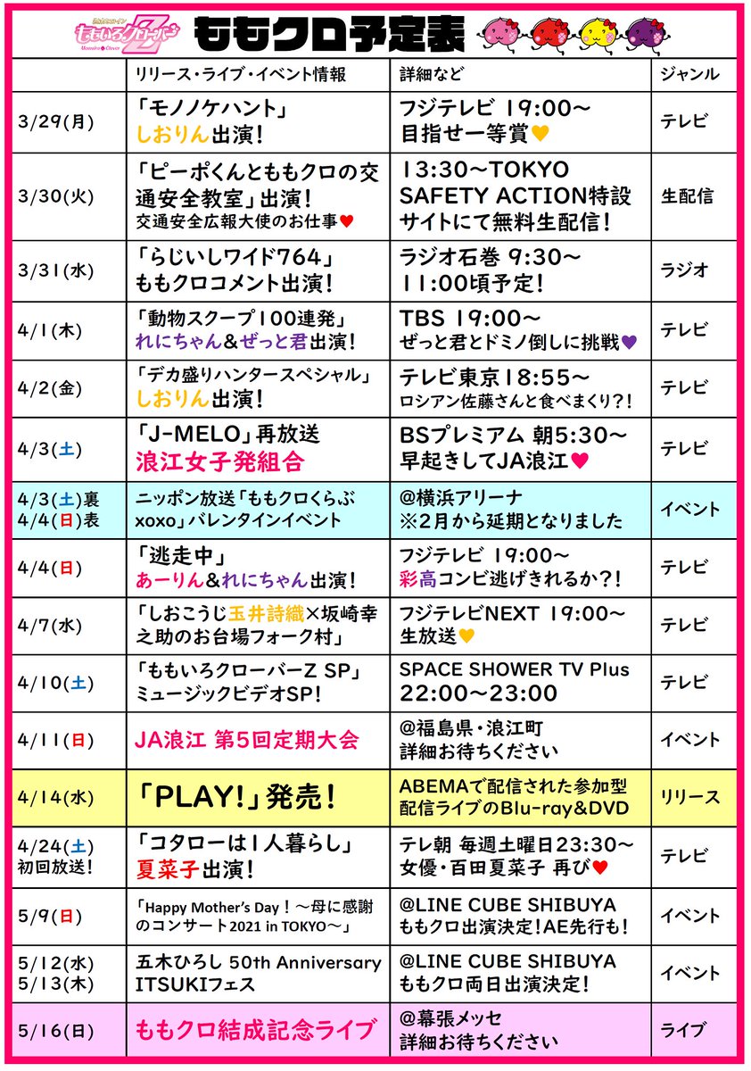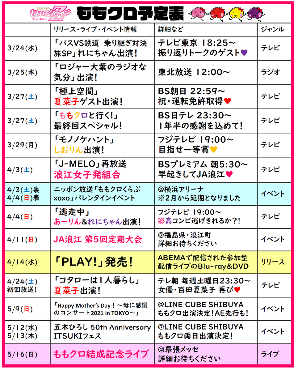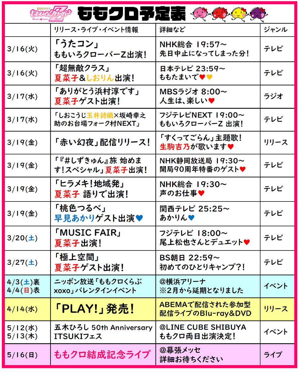 ももクロ予定表