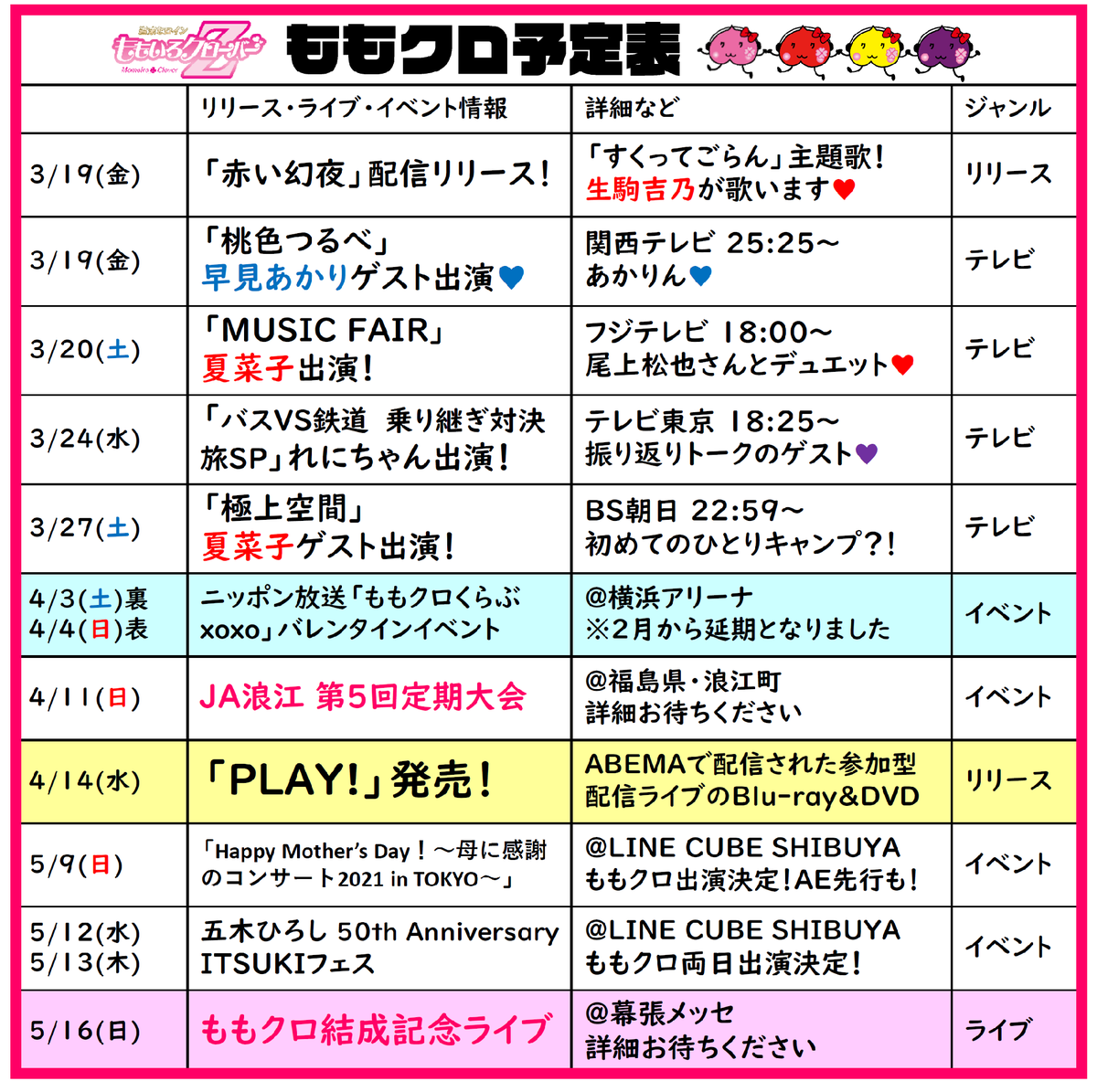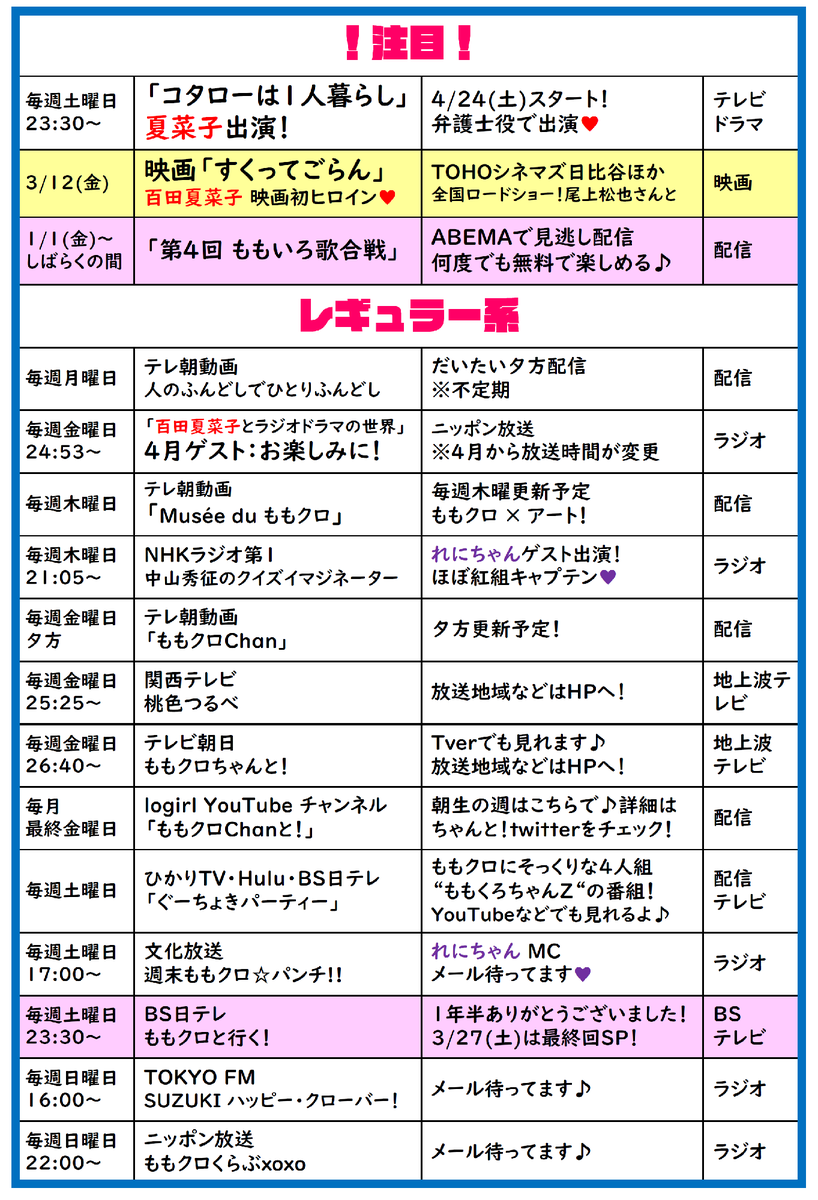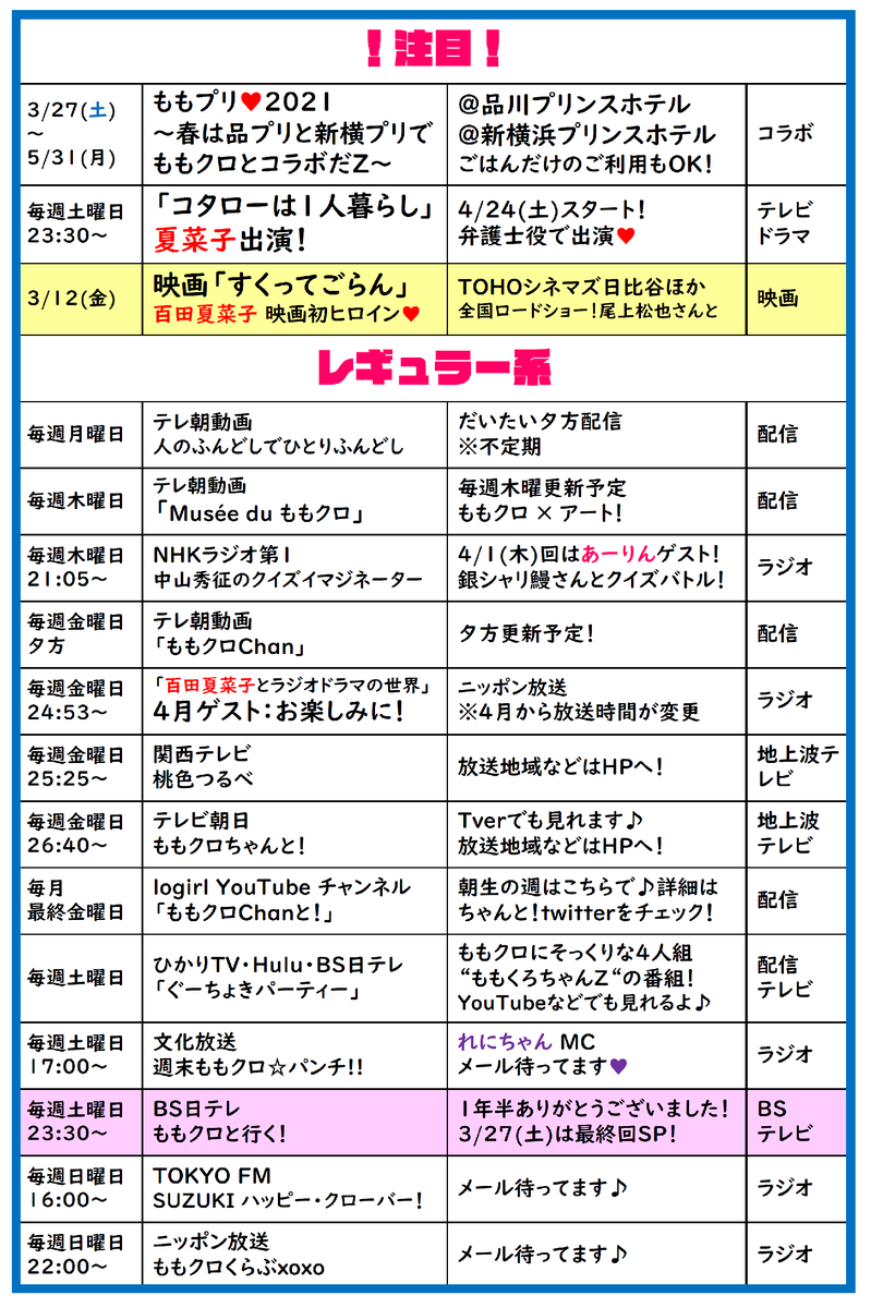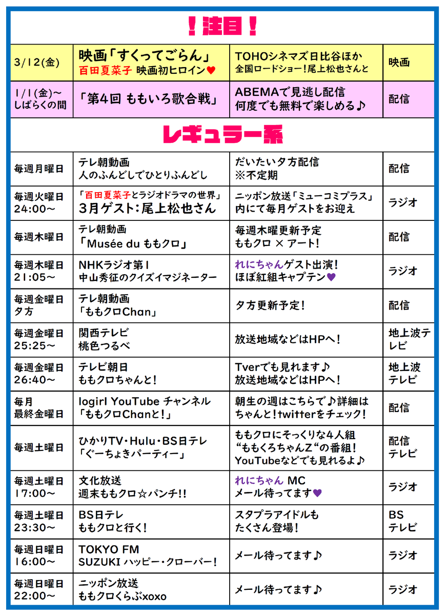 ももクロ予定表