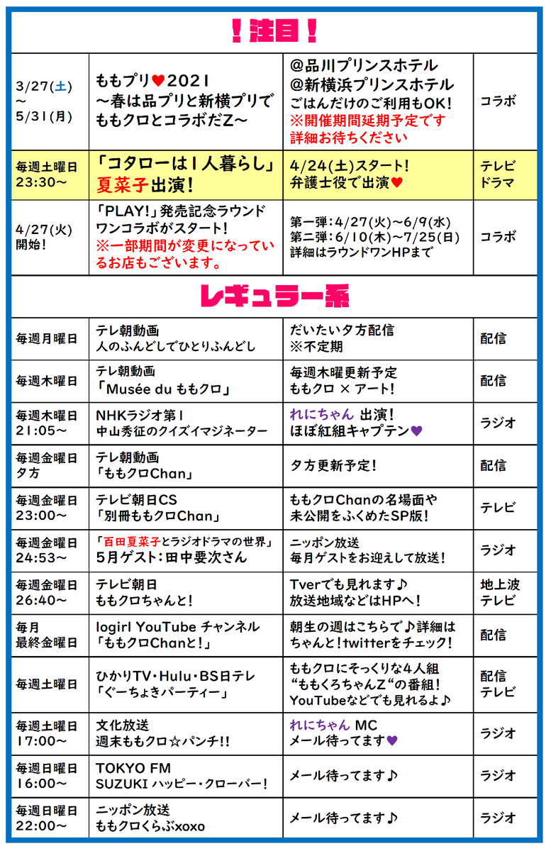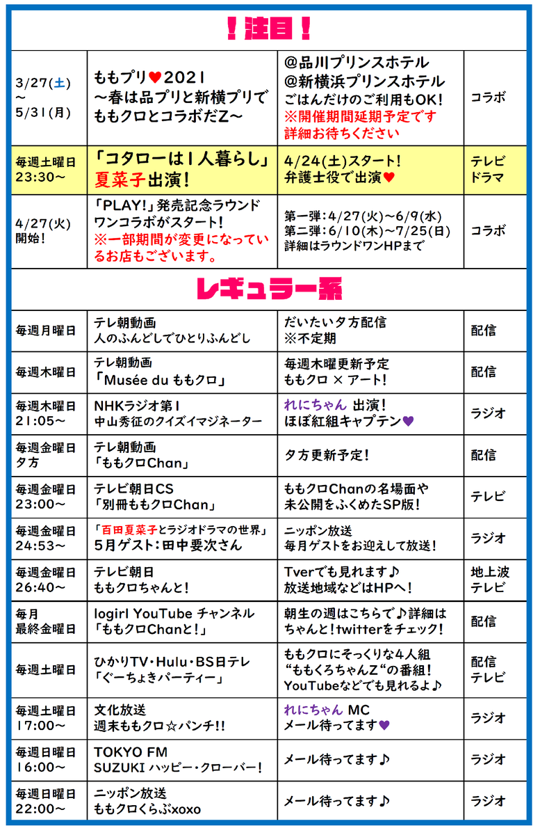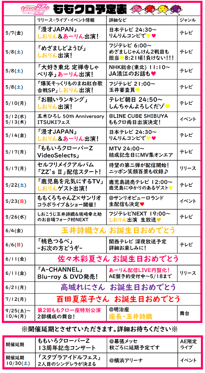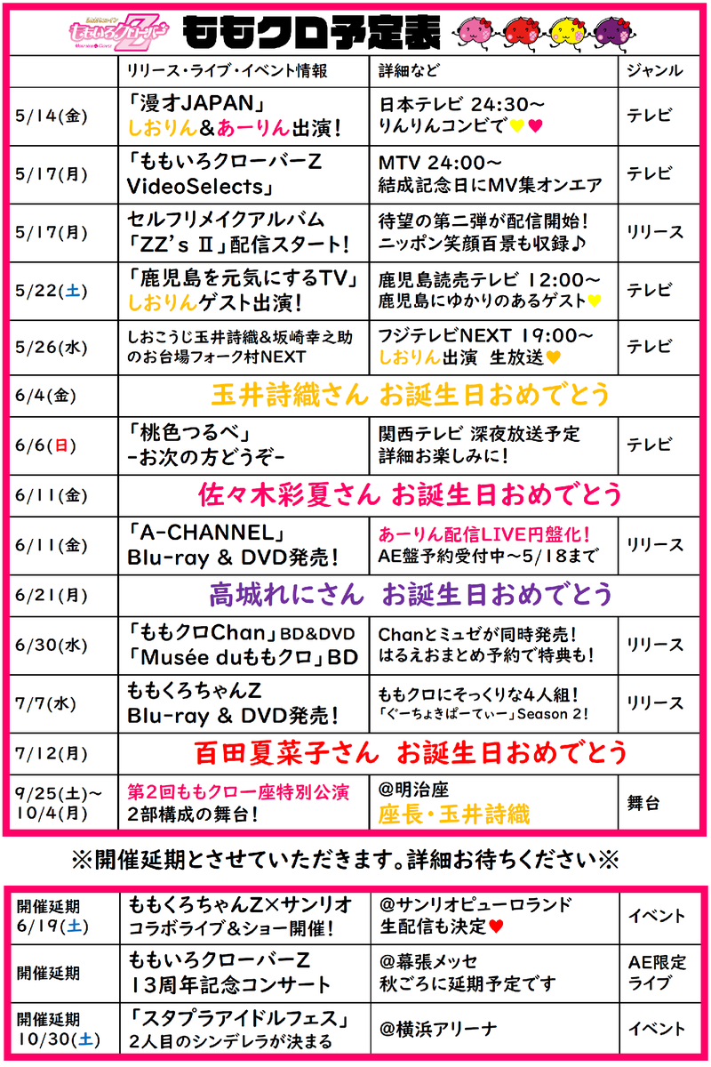 ももクロ予定表💕