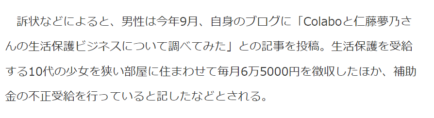 こんなのを訴えたのか。仁藤氏発言を引用しており、"自業自得"というのはメディア側の評価であることは明らか(しかも、そういう意味としか取れないし……)。到底名誉毀損になるとは思えない。