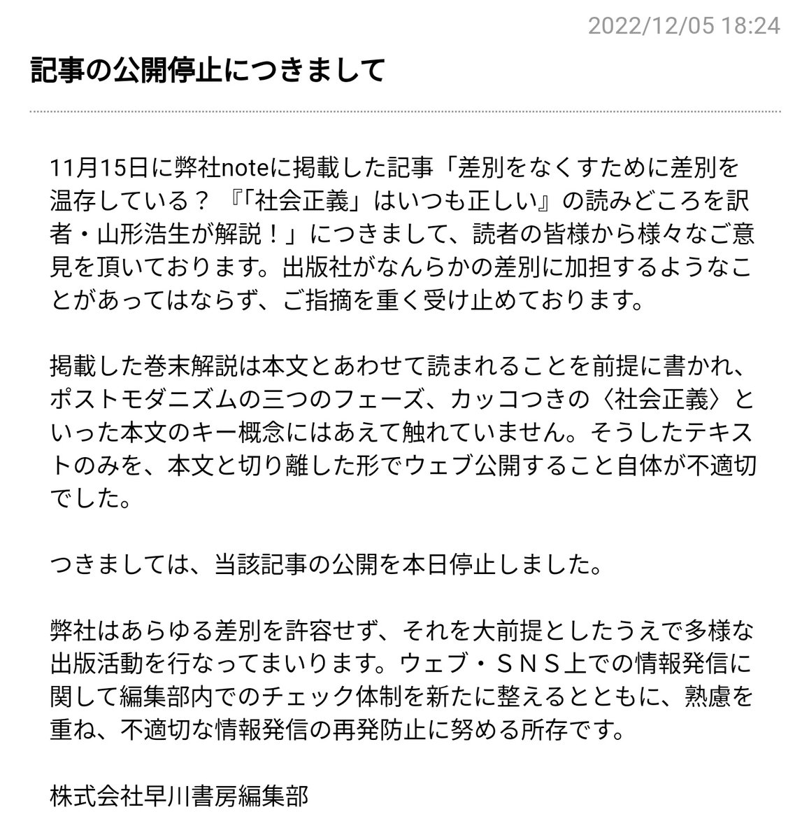 この一ノ瀬さんが書いた記事があるのかと思って探しちゃったよ。書いた人じゃなくて担当がこんなお詫びするの、筋が違うでしょ。中身はまだ見てないが。 twitter.com/shotichin/stat…
