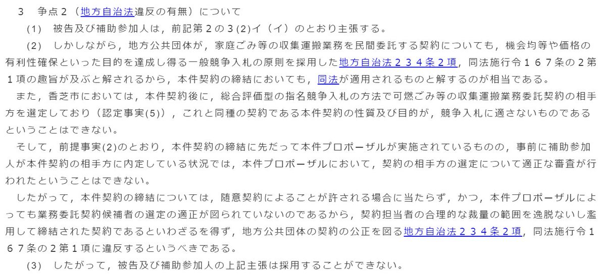 ただ、形式的に決まるものではなくて、そもそも随契の例外にあたるかどうかには自治体に広範な裁量が認められているし、さっきの平成30年の裁判例はプロポーザル実施前の事業者内定がバレたことが、無効の理由になっている。