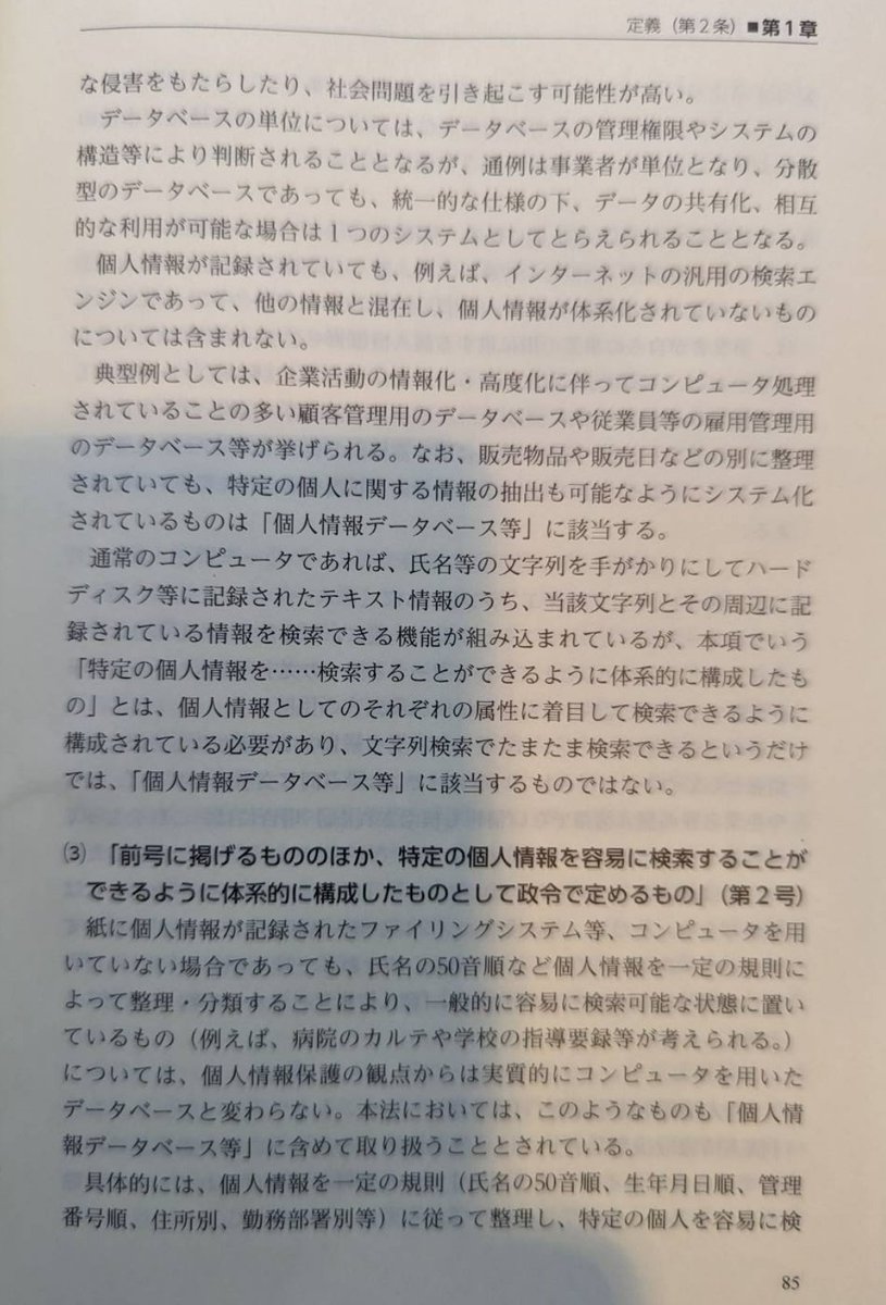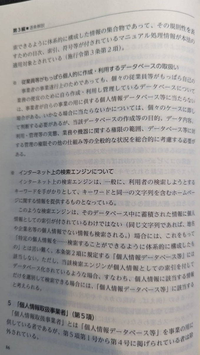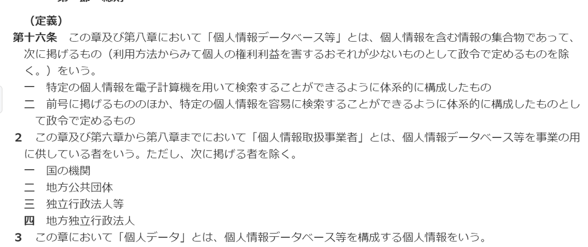 なお、問題の「個人情報取扱事業者」は、「個人情報データベース等を事業の用に供している者」をいいます。件数とかは関係ないわけですね。