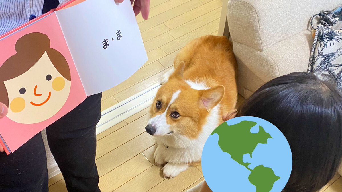 読み聞かせ、犬もちゃっかり聞いてる
