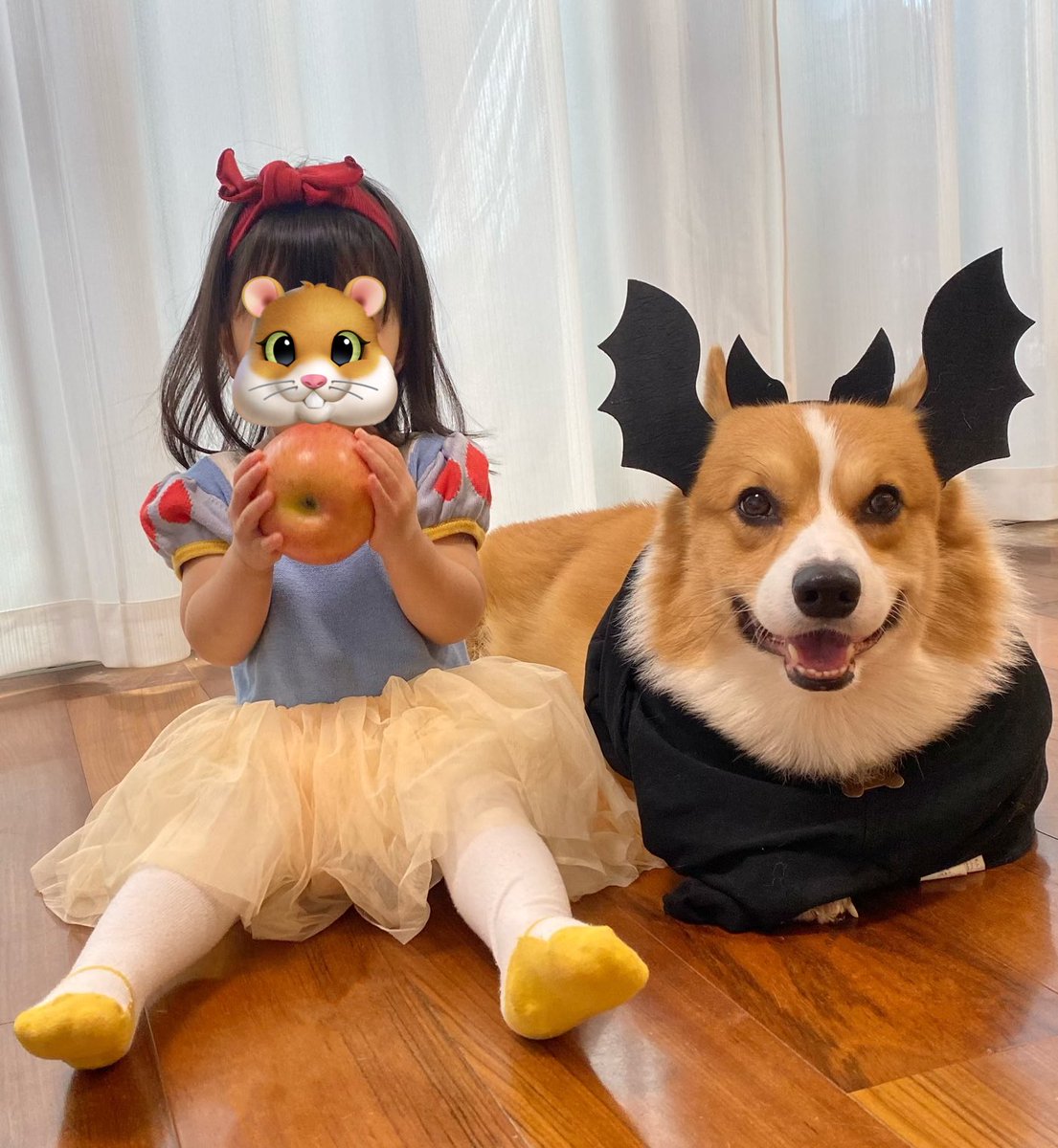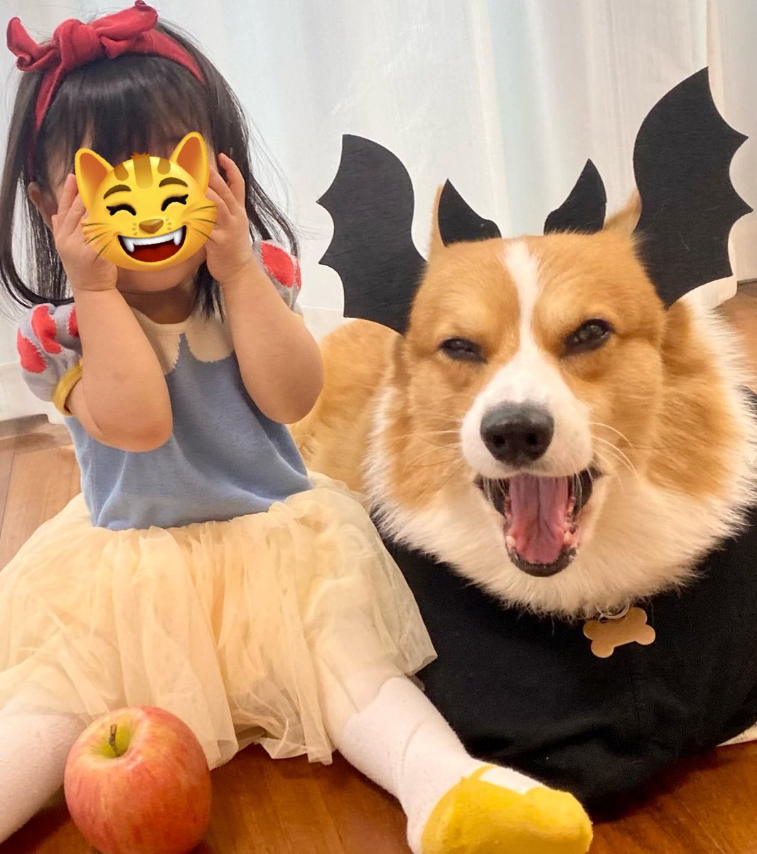 ハロウィンさせられる1歳児と犬