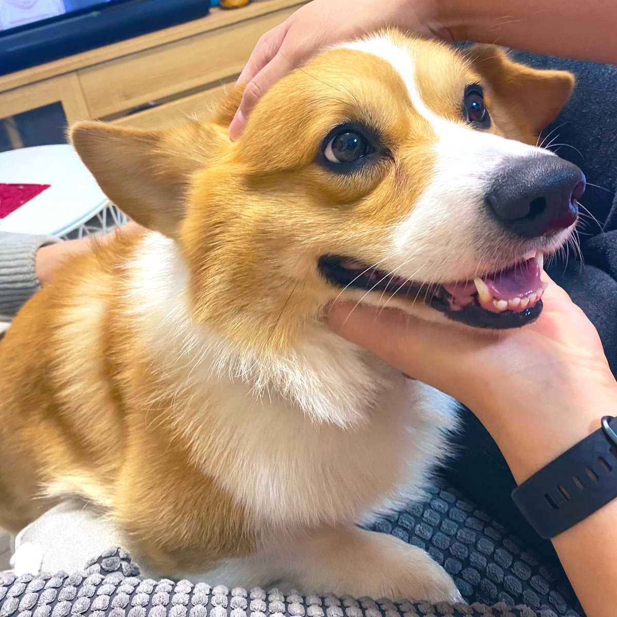 スマブラの片手間に撫でられ犬。撫でるのやめたら何で!?って感じの顔してたな。