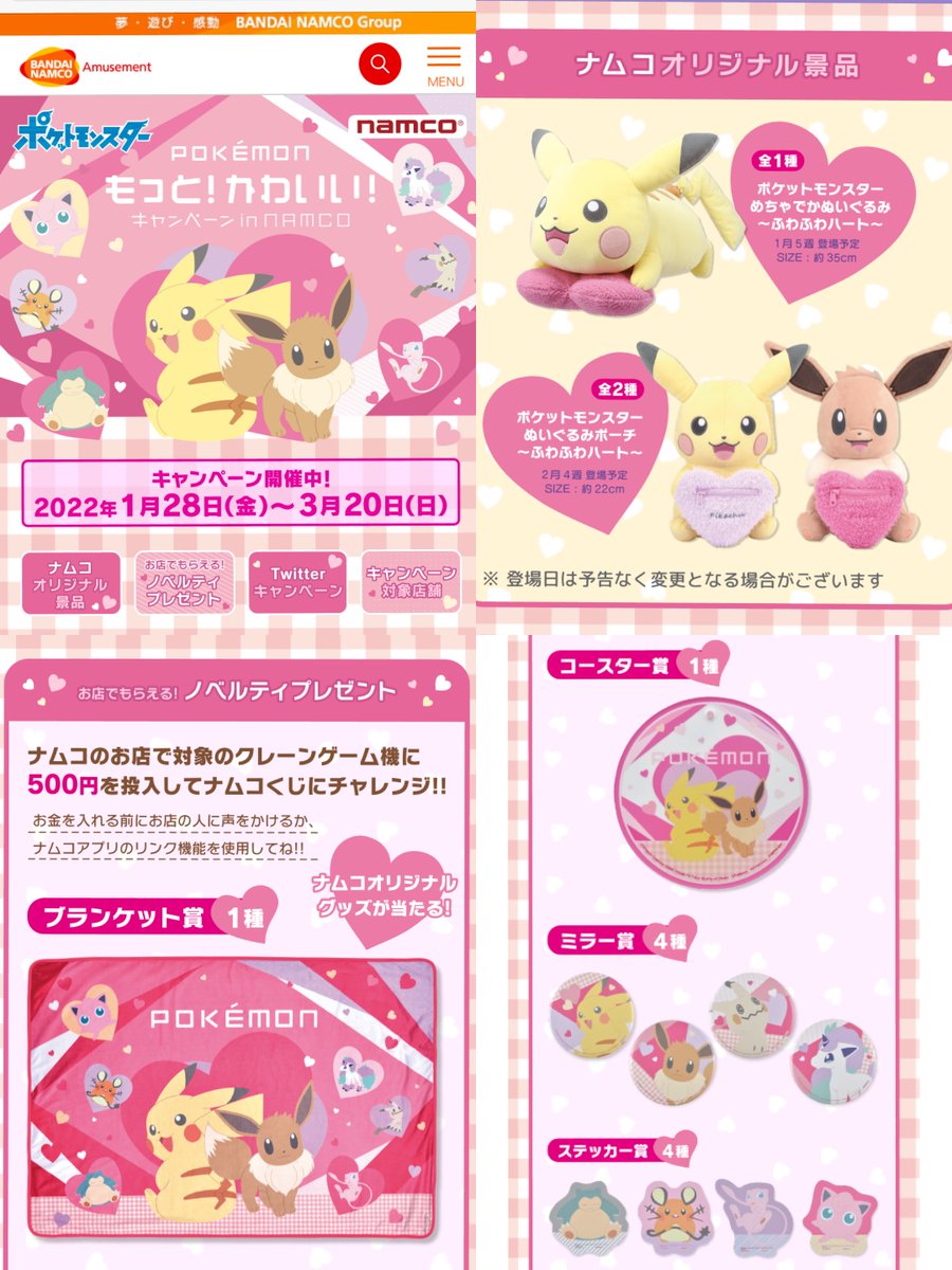 バレンタインをピカチュウとイーブイが応援♥ナムコオリジナルグッズが登場! 『ポケモン もっと!かわいい! キャンペーン in NAMCO』開催!!