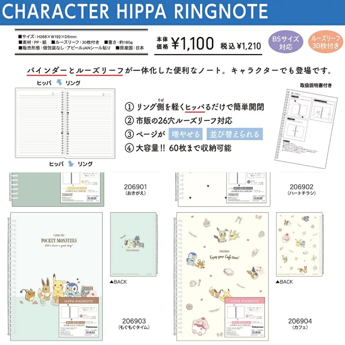 バインダーとルーズリーフが一体化した便利なノート「ヒッパリングノート」からポケットモンスター