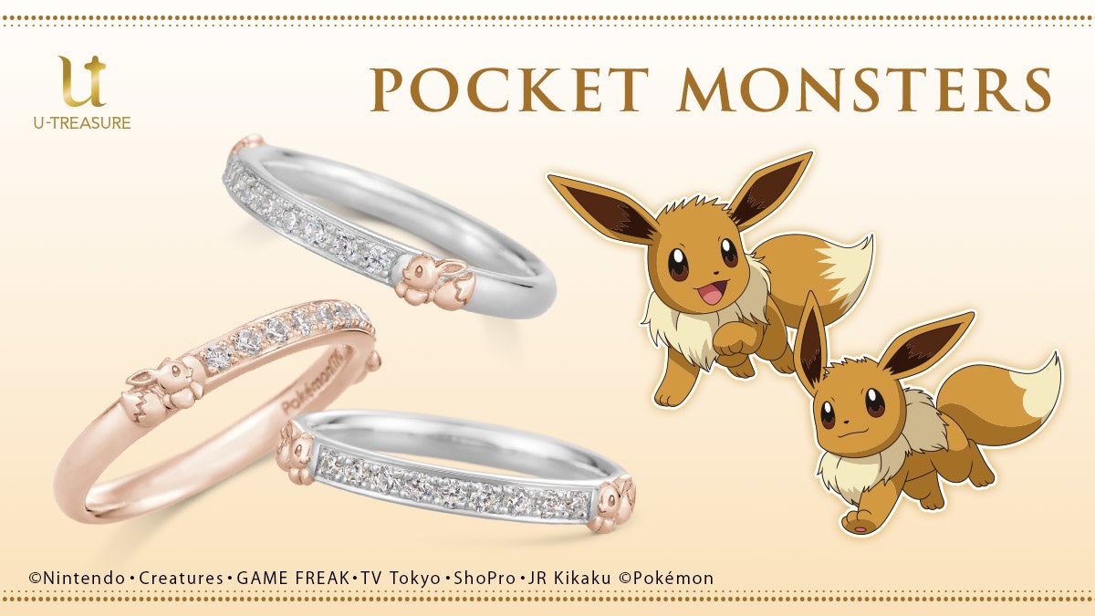 【ポケモン】イーブイ新作ハーフエタニティリング(指輪)。ピンクゴールドのイーブイが輝くダイヤモンドを囲んで。2月22日(火)発売