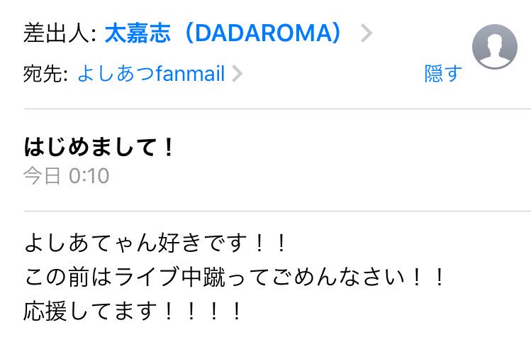 構って欲しくて嘘をつきました。本当はこれ帽子です。人を傷つけない嘘ならついていいと思っていましたがもしかしたら「よしあつさんの新しい髪型、帽子じゃないの?ショック。信じてたのに。もうDADAROMA聞かない」と思う人もいるかもしれないので本当の事を書きます。これは帽子です。ごめす
