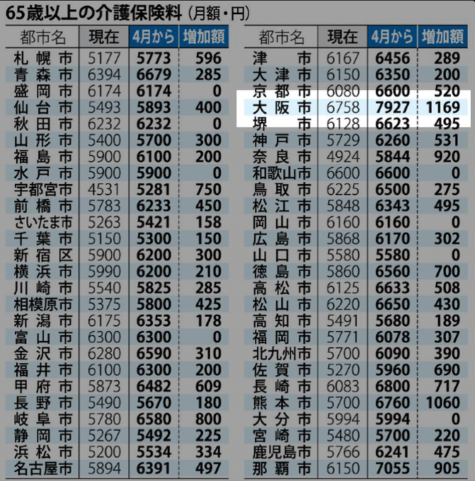 @youtosin 大阪市は介護保険料が大幅増額!