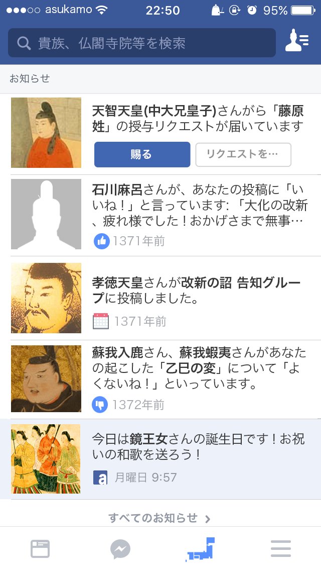 中臣鎌足がFacebookをやっていた場合を考えてみました。