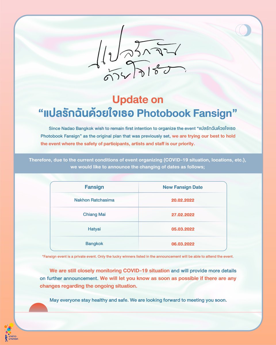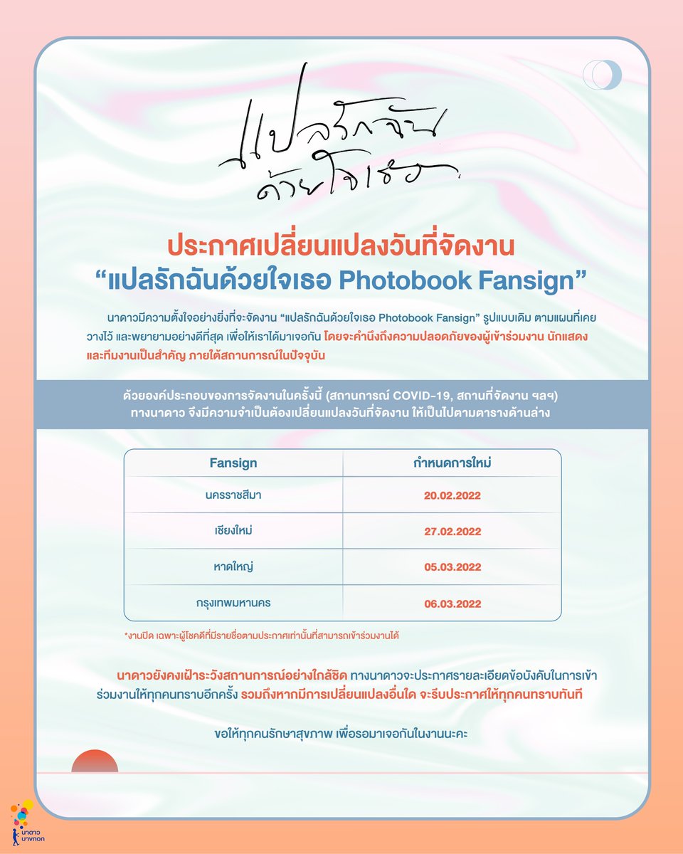 ประกาศเลื่อนวันจัดงาน #แปลรักฉันด้วยใจเธอ Photobook Fansign
