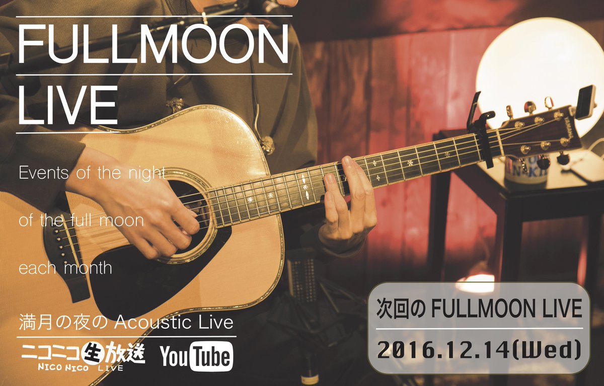 満月の夜のアコースティックライブ『FULLMOON LIVE』を2016年11月14日(月)21:00-より放送。