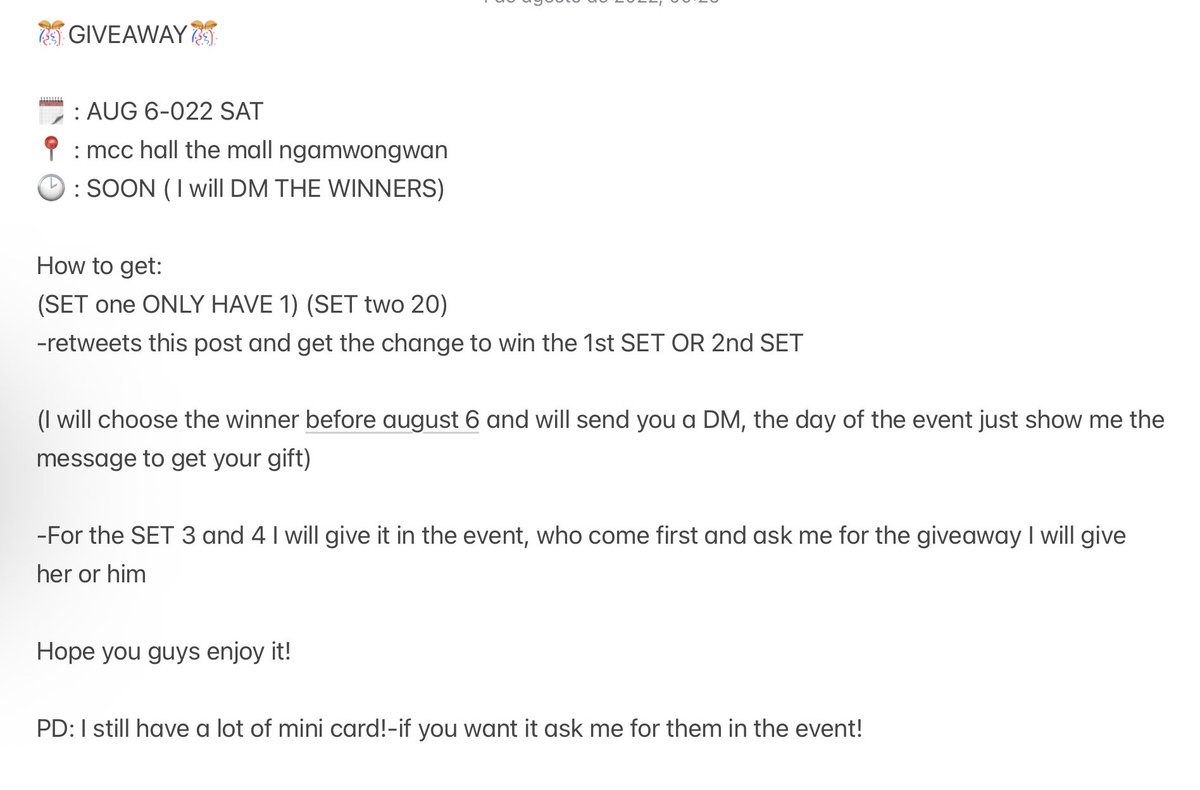 (I will choose the winner before august 6 and will send you a DM, the day of the event just show me the message to get your gift)