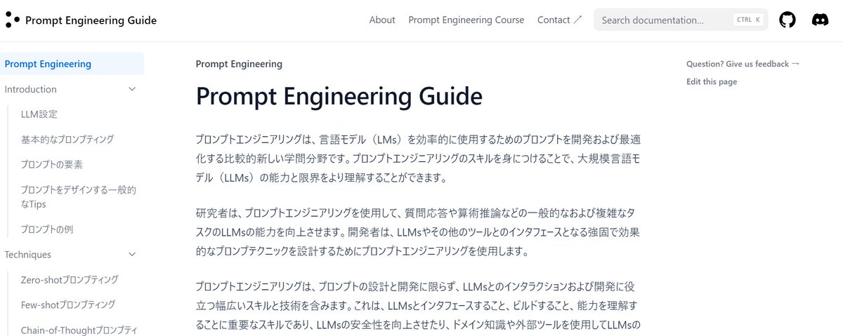 ChatGPTユーザーとして、中級レベル以上になりたいならプロンプトエンジニアリング・ガイドを熟読するのがよさげ。