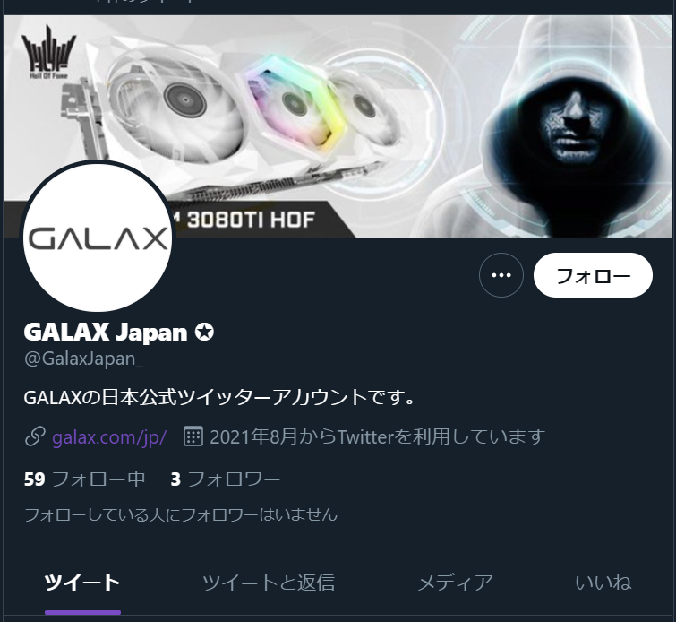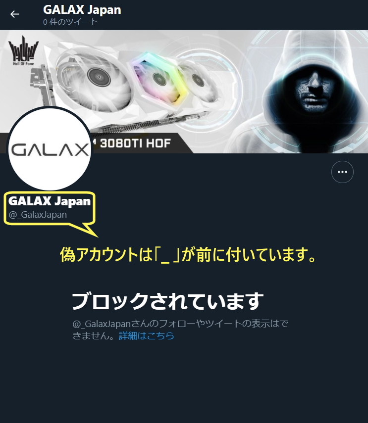 アイコン、ヘッダー、プロフィール等も同じものを使い、@GalaxJapan_ (最後がアンダースコア)となっています。