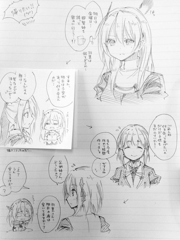 会社の休憩中のボールペン落書きで妙高4姉妹